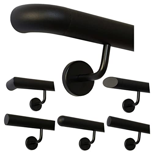 corrimano in acciaio inossidabile verniciato a polvere nero Ø 42,4 mm con supporto angolato + terminali vari (piatto, curvo, semicircolare, arco, angolo, angolato)