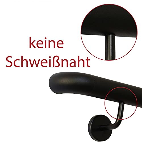 Corrimano Nero Verniciato V2A Acciaio Inox Corrimano Interno Esterno Intemperie Resistente - Arco Alla Parete, 360 cm mit 4 Halter