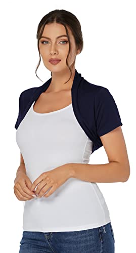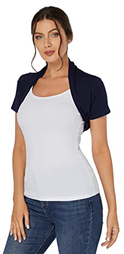 J.Corrine Bolero Donna Elegante Cerimonia Coprispalle a Maniche Corta Cardigan Corta con Frontale Aperto da Bolero Shrug Blu Scuro 2XL