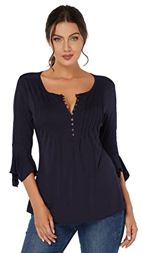 J.Corrine Camicetta Donna Elegante Cerimonia in Moda Maglia Manica a 3/4 Top Scollo a V con Bottone Tunica Maglietta Blu Scuro 2XL