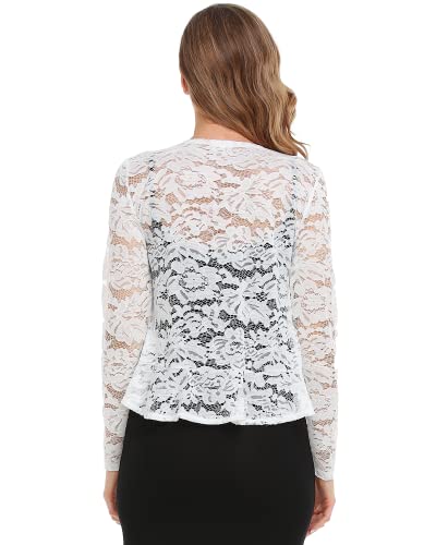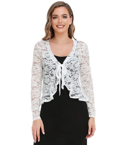 J.Corrine Coprispalle Donna Elegante Cerimonia Bolero in Pizzo Manica Lunga Cardigan in Moda Grigio Bianco XS