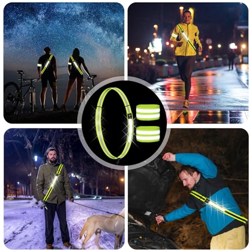 3 luci da corsa per jogging con cintura catarifrangente + bracciale riflettente, lampada a LED regolabile USB, ricaricabile, luce di sicurezza notturna, cintura da corsa per jogging, corsa,