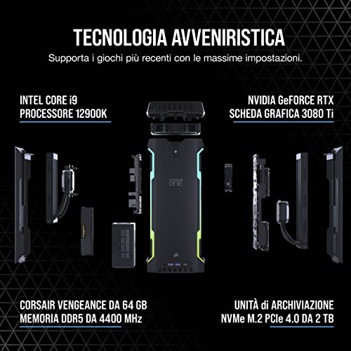 Corsair ONE i300 PC Gaming Compatto (CPU Intel Core i9-12900K, Scheda Grafica NVIDIA GeForce RTX 3080 Ti, Memoria DDR5 VENGEANCE da 64 GB, Thunderbolt 4, Windows 11 Pro) Nero