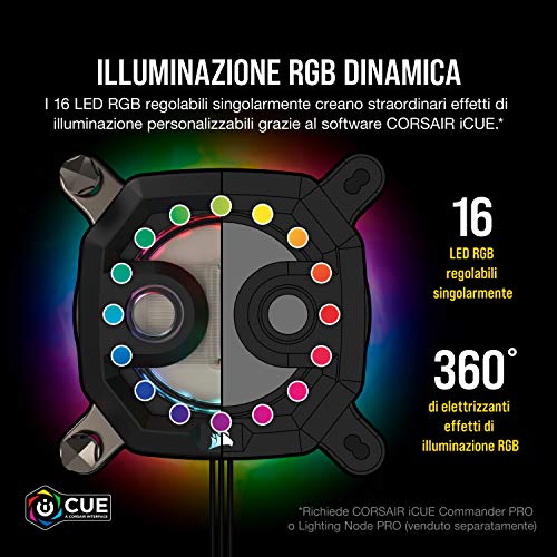 Corsair Hydro X Serie, XC7 RGB Waterblock per CPU per Intel 115X/AMD AM4 Socket (Raffreddamento della CPU Senza Compromessi, Personalizzabili Illuminazione RGB, Semplicità di Installazione) Nero