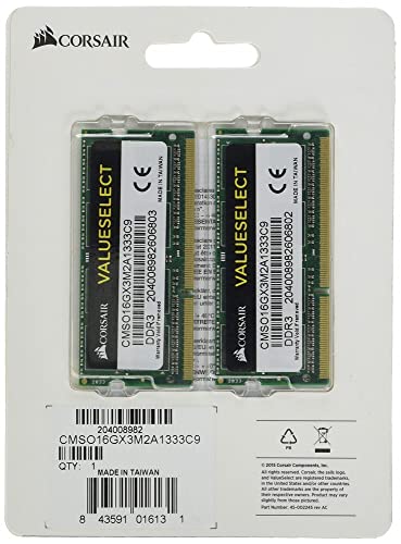 Corsair Value Select SODIMM 16GB (2x8GB) DDR3 1333MHz C9 Memoria per Laptop/Notebook, Nero