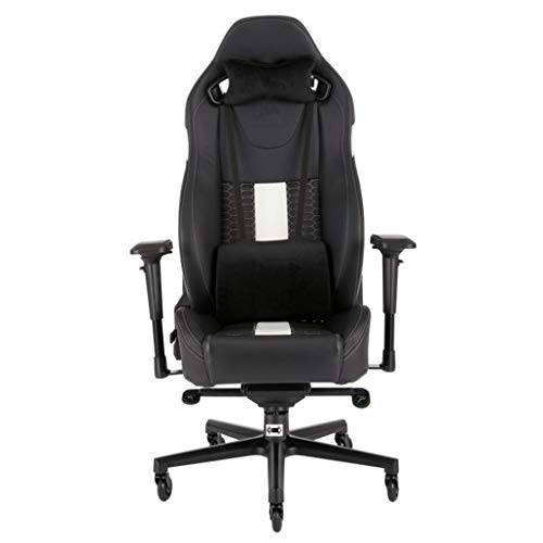 Corsair T2 Road Warrior - Sedia gaming in Similpelle (Facile da Assemblare, Perno Regolabile in Altezza, Braccioli con Movimento 4D, Schienale Ampliato Reclinabile) Nero/Bianco