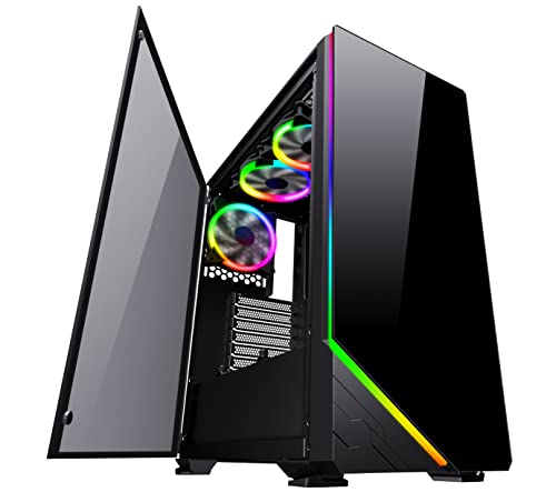 Cortek Blade - Case Gaming ATX Mid-Tower con Pannello Laterale in Vetro Temperato, Pannello Frontale in Vetro, Strip RGB Frontale, Flusso D'Aria Elevato, Ventola Posteriore 120 mm, Nero