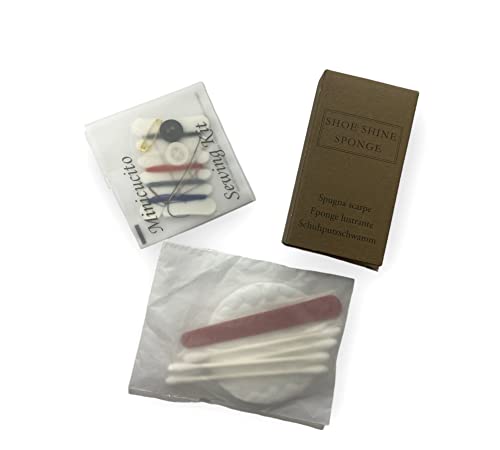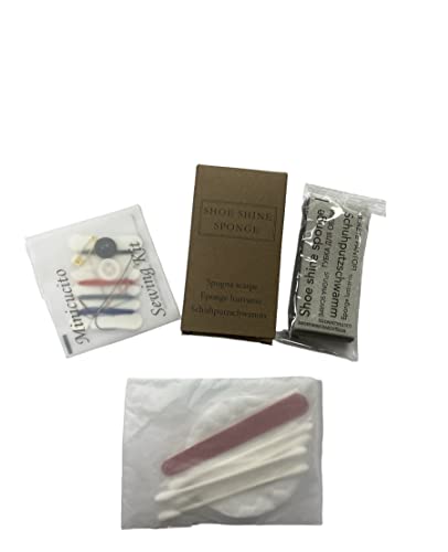 SET CORTESIA IN ORGANZA GIA'COMPOSTO 100pz totali contenente 25pz.vanity kit in flowpack - 25pz. spugna scarpe in astuccio kraft - 25pz. set cucito - 25pz. sacchetti luxury organza