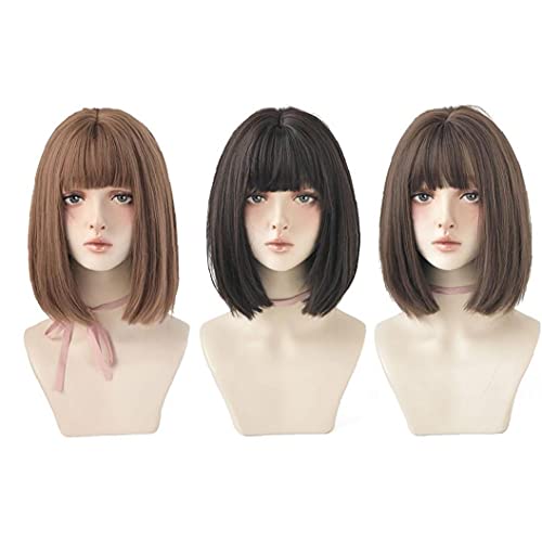 Con la frangetta: brevi parrucche dritto frangetta sono integrati di design, adatto per vari forme del viso, e rendere il volto più snello.