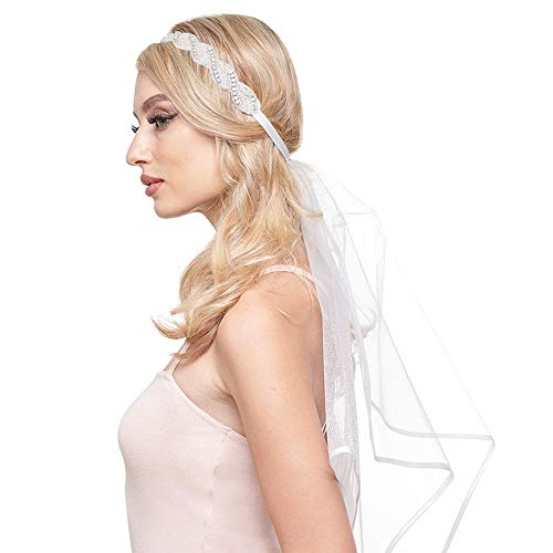 ★ Squisita fascia in cristallo★- Grazioso e splendido velo in tulle con fascia elastica per capelli, facile da indossare e togliere, senza premere la testa, regolabile l'altezza appropriata, non facile da cadere come lo stile del pettine, velo da sposa a 2 livelli facile da fissare sulla parte posteriore della testa.