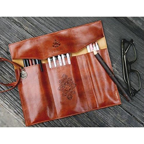Cosanter, astuccio arrotolato in finta pelle per matite, astuccio porta pennelli da trucco per le donne, marrone