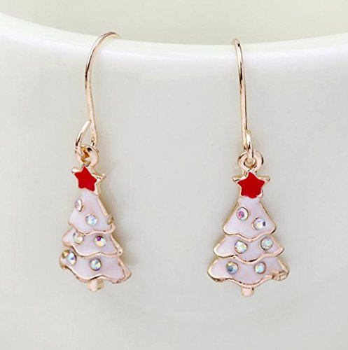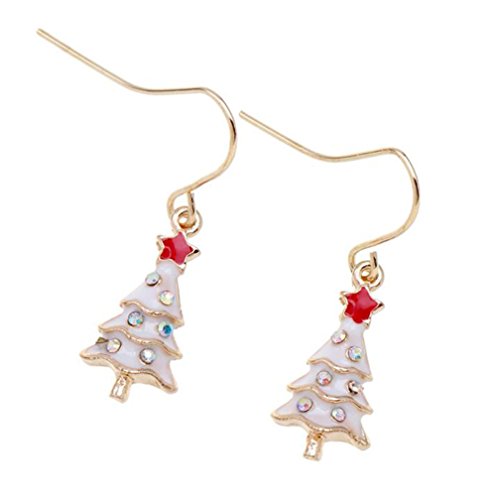 Cosanter 1 x Mignon Albero di Natale orecchini donna earrings in bianco cristallo per regalo noël-2 colori, bianco, 2.4CM X 1.3CM