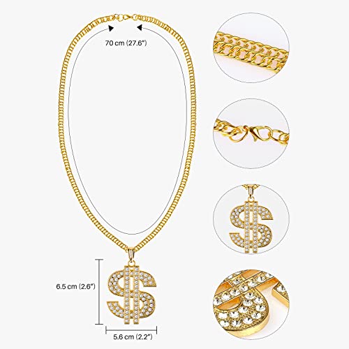 La catena e l'anello del segno del dollaro sono realizzati in lega, lucida e solida. Lunghezza della collana in 70 cm o 27,6", lunghezza del bracciale in 20 cm o 7,9"" e anello aperto regolabile, si adatta a qualsiasi dimensione del dito.