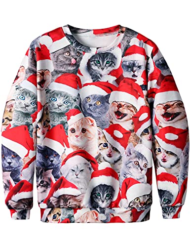COSAVOROCK Felpa Natale Donna Uomo Pullover Maglione Natalizio Gatto XL