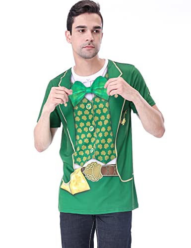 Occasione: T-Shirt costume da leprechaun per uomo, ideale per eventi all'aperto o al coperto, adatta come novità per il costume di San Patrizio, carnevale, Natale, Halloween, cosplay e feste a tema.