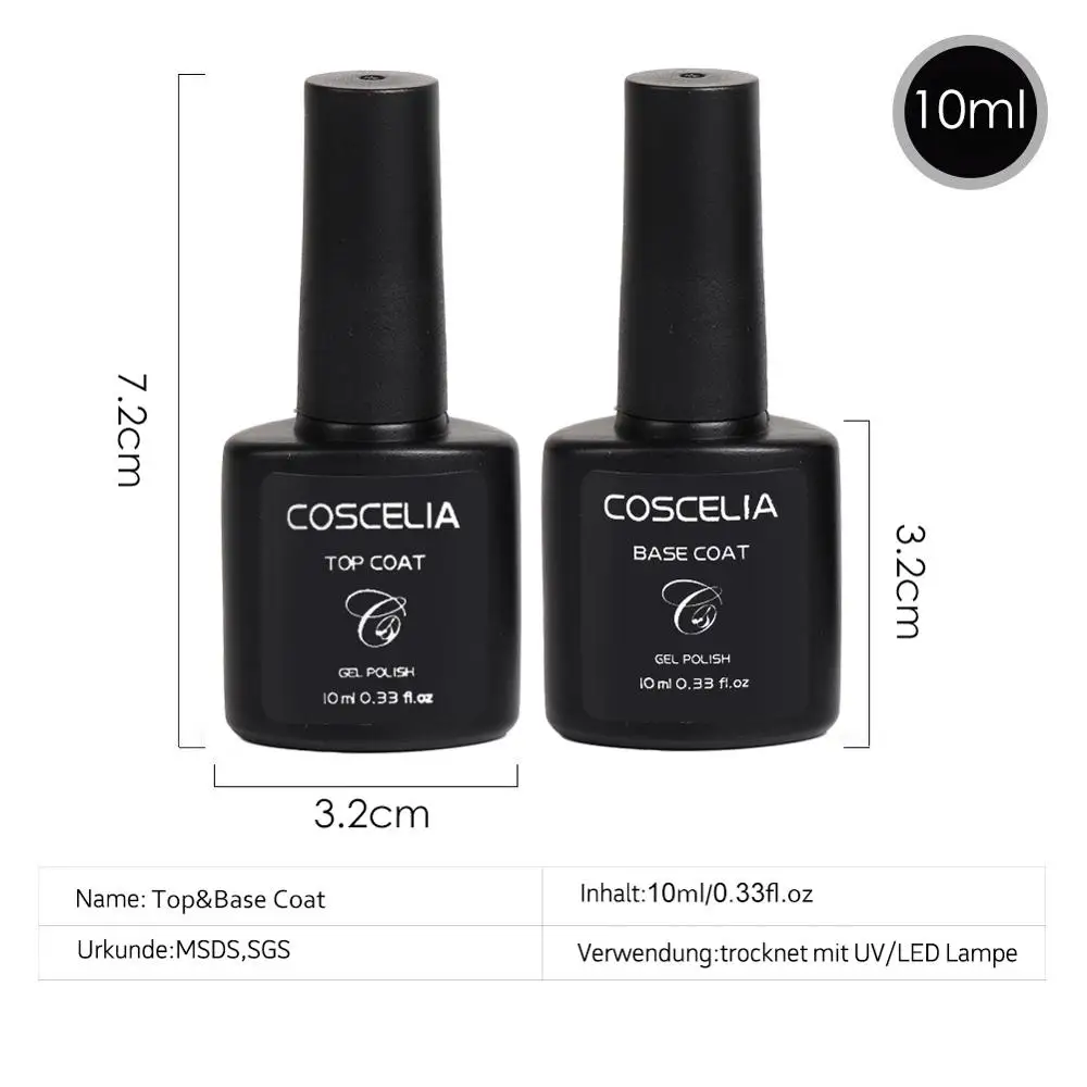COSCELIA Top Base Coat Set 10ML For Gel Nail Polish For Manicure Semi Permanant UV Gel Varnish For Nail Art Matte Top Remover