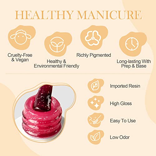 BASE COAT&TOP COAT: è necessario per usare con la base coat e il top coat gel, possono fare le unghie brillante e luminoso, fa il gel durata circa 28 giorni o più con un'applicazione corretta. Se applicarlo sull'unghie lunghe, l'effetto sarà più evidente.