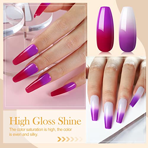 EFFETTO 8 COLORI GEL CHE CAMBIANO COLORE: gli smalti semipermanenti gel possono essere cambiato il colore con la temperatura, ci sono 8 colori bellissimi, sono adatti a tutte le stagioni, rimarrai colpito dai colori dell'arcobaleno, senso splendido e di classe, si può scegliere il colore liberamente in base al tono della pelle/occasione o stagioni.