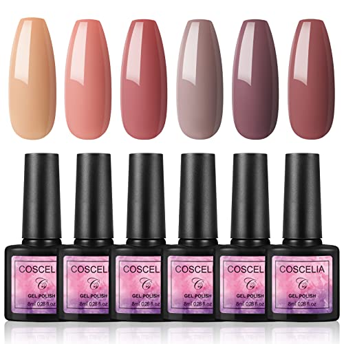 COSCELIA Kit Gel Unghie 6 colori Kit Manicure per Unghie Smalto Semipermanente 8ml Soak Off UV/LED Nail Art Manicure