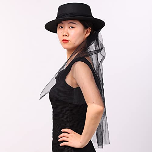 Cappello nero con velo, cappello vittoriano nero, cappelli vittoriani vintage per le donne, cappello gotico velo bianco nero, cappelli streghe, abbigliamento steampunk per le donne