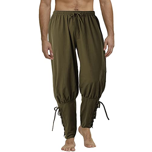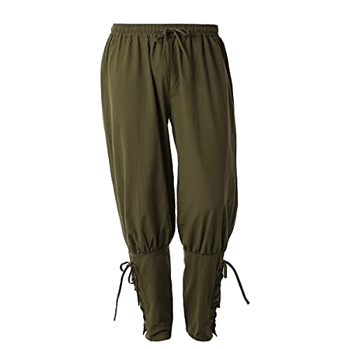COSDREAMER Pantaloni da Pirata Vichingo Medievale per Uomo, Verde Militare, Piccolo L