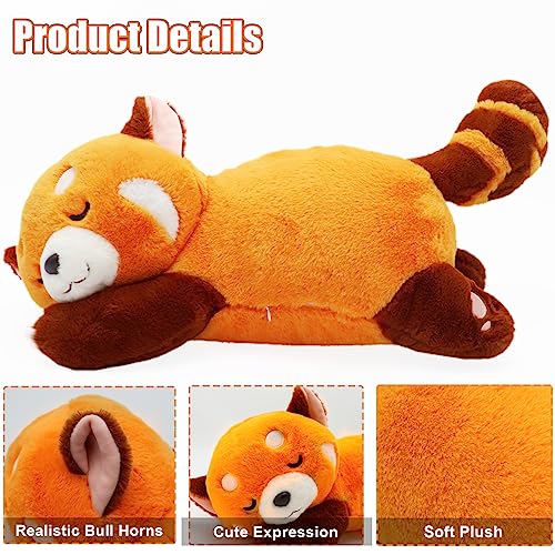Coseaon Panda Rosso Peluche Red Panda Plush Bambola Cuscino Kawaii Panda Plushie Animali de Peluche Regalo (35cm, Panda in sdraiata)