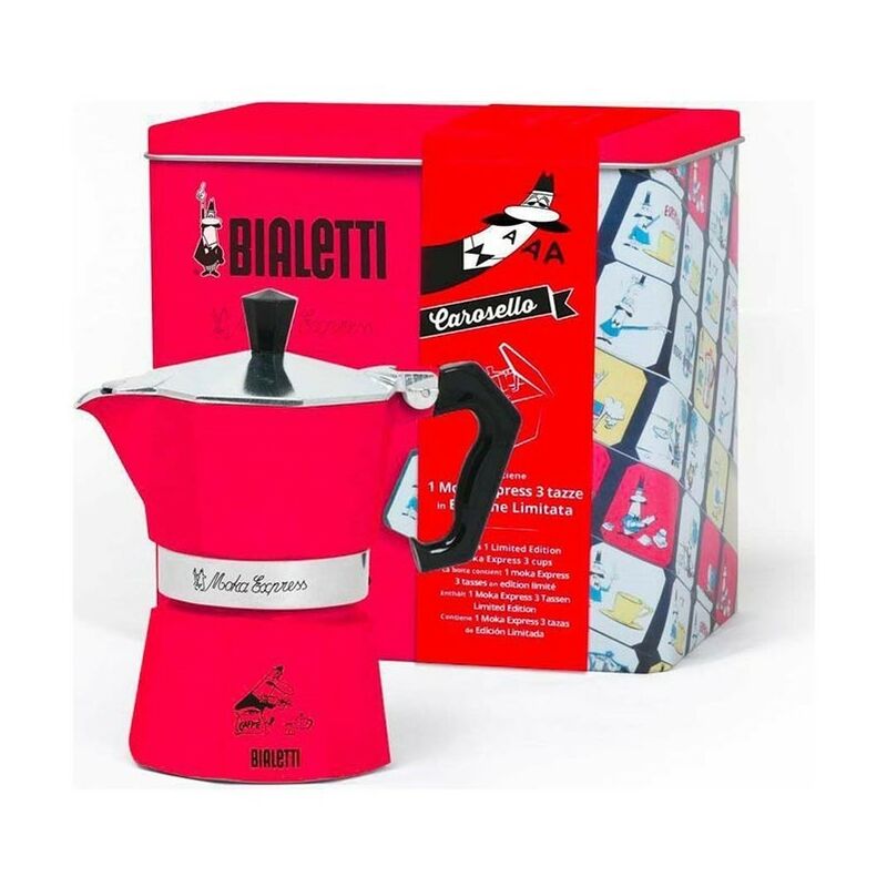 Bialetti moka express3 tazzerossa La bialetti Moka Exspress 3 tazze edizione limitata Moka in alluminio, con rivestimento esterno in alluminio verniciato e manigliame in nylon. Con le sue forme e i suoi colori racchiude tutta la qualità Bialetti. Non lavabile in lavastoviglie
