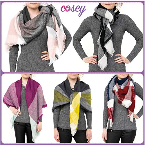 Cosey - Sciarpa Colorata XXL - (Oversize), a Scacchi Rosso e Blu Navy