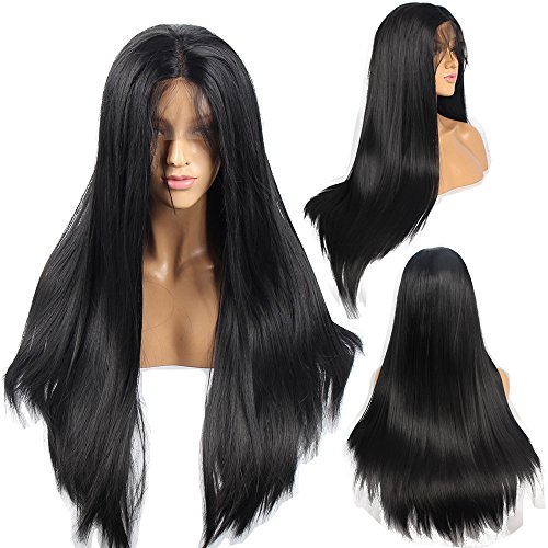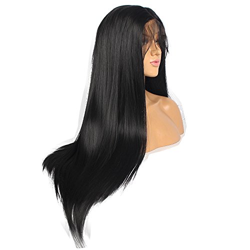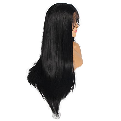 Ivan Cosmetic Straight Wig 24 inch Dark Brown Synthetic Lace Front Kanekalon Fiber High Temperature Resistant Wigs With Baby Hair Pre Plucked Hair For All Skins Women.