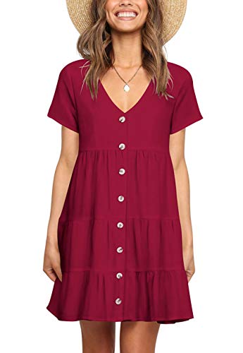 Caratteristiche: abito estivo casual, abito a dondolo, abito a spalla, mini abito, paio di abiti corti con scollo a V, manica corta, dettagli a volant, bottoni sul davanti, design fodera e corpetto vestibilità regolare.