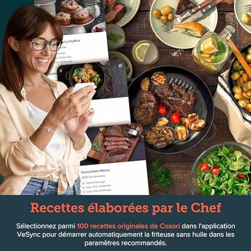 Non è necessario stare in cucina: collegandosi al WiFi e VeSync APP, è possibile monitorare la cottura dal proprio mobile, preriscalda in anticipo, regola l'ora e la temperatura a piacimento, e puoi goderti la cena direttamente il momento dopo lavoro!
