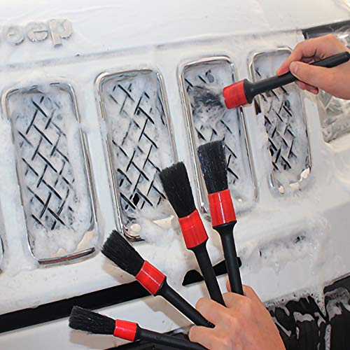 Ampia applicazione: il kit di pennelli per dettagli può aiutarti a pulire aree strette che sono difficili da raggiungere per pulire la polvere, adatto per la pulizia di interni, esterni, ruote, cruscotto, spazi di sede, raggi, prese d'aria, cerchi, briciole di pane e altri piccoli oggetti, ecc.