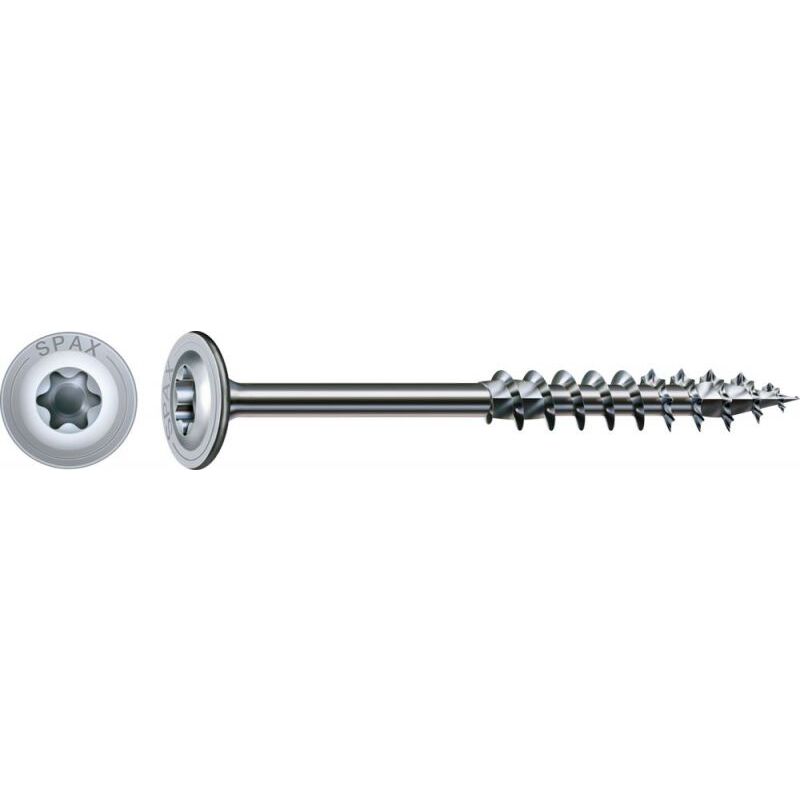 SPAX Vite per la costruzione in legno HI.FORCE WIROX, 8 x 160 mm, 50 Stk., Filetto parziale, Testa piatta, T-STAR plus, 4CUT, WIROX, Diametro Ø 8 mm e 10 mm - 0251010801605 Numero dell'articolo: 0251010801605EAN: 4003530245671 Lunghezza della filettatura: 80 mm Dimensione della lama: T40 Diametro della testa: 20 mm Lunghezza totale: 160 mm Coppia di avvitamento sensibilmente ridotta e diminuzione dell'effetto di spaccaturaImpiego: costruzioni in legnoMaggiori forze di penetrazione della testa rispetto alla vite a testa svasataAvvitamento di tavole e assi (ad esempio fissaggio sicuro di listelli fermategola) Descrizione La particolare impronta l'attacco è una cosiddetta testa svasata a cava esalobata. Rispetto ai tipi di attacchi meno precisi come Phillips o intaglio a croce, la superficie di attacco della nostra T-STAR plus è molto più grande e i bit T-STAR si innestano nella testa della vite sempre in modo ottimale. La massima e precisa trasmissione della forza dall'avvitatore alla