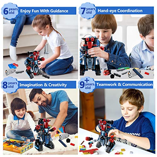 GIOCATTOLI STAMINALI EDUCATIVI - Presenta i bambini ai mattoni dei migliori giocattoli STEM educativi per favorire le loro curiosità. Da bambino costruiamo insieme le diverse parti e scopri come funziona il sistema di costruzione, il che incoraggia la pazienza e la concentrazione, mentre sviluppa la loro coordinazione occhio-mano, capacità di pensiero logico e creatività. La costruzione, l'apprendimento e il controllo remoto dei robot non è mai stato così divertente!