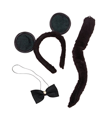 Costume da animale, unisex, per adulti, con orecchie di Topolino, fascia nera + papillon + coda ~ kit di abbigliamento da uomo per la settimana mondiale del libro per addio al celibato, Nero,