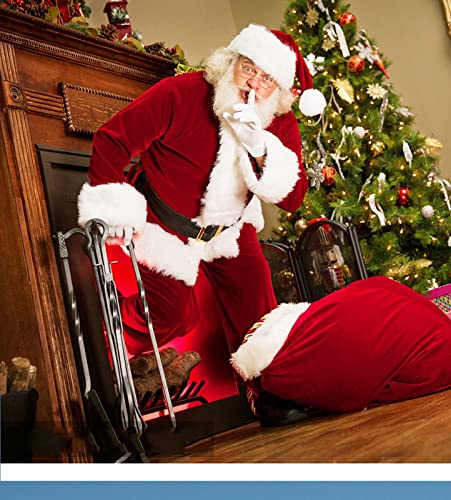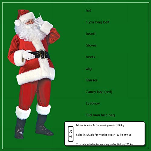 Costume da Babbo Natale per adulti Il set di costumi di velluto di lusso include: Giacca Pantaloni cappello cintura barba Guanti stivali parrucca Occhiali Borsa di caramelle sopracciglio Borsa per il viso vecchio