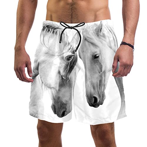 Costume da bagno da uomo, ad asciugatura rapida, fodera in rete, con tasche, stile classico, cavallo bianco, multicolore, XXL