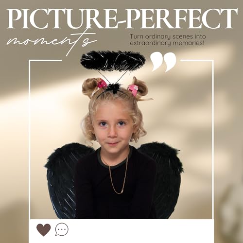 Costume per bambini con ali d'angelo, aureola e tutù, disponibile in nero, bianco o rosso, per Halloween, Natale, presepe, compleanno o angelo, Nero, S