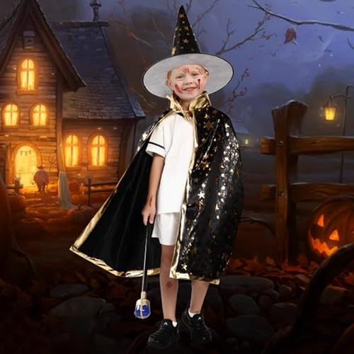 Costume di Halloween per bambini, costume da mago, costume da mago per bambini, Halloween, strega, mantello con cappello, mantello Wizard Cape Witch Mantello per bambini, ragazzi, ragazze, cosplay