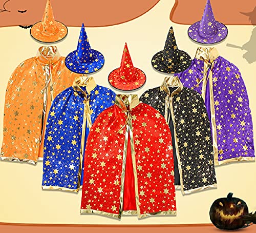 Combinazione perfetta: il pacchetto include mantello magico + cappello + lanterna a zucca. Progettato per i bambini, per giocare il ruolo della strega o del mago. La lanterna a zucca è bella. È possibile utilizzarle per fare dolci. Buon divertimento durante il felice periodo di Halloween. Adatto per bambini, bambini, ragazzi, ragazze, adolescenti.