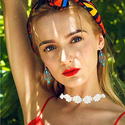 【Fascia stile hippy】: La fascia è fatta di margherite bianche, adatta a tutti. La parte superiore della fascia è decorata con margherite bianche, affascinante e bella. È un accessorio indispensabile per l'abbigliamento negli anni '60 o '70.
