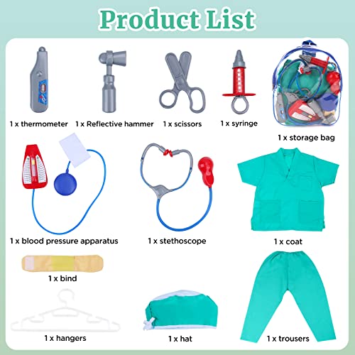 DeAO Costume da Infermiera Gioco d'Imitazione per Bambini Set Include l'Uniforme Medica Tradizionale, Accessori del Medico e lo Zaino Portaoggetti