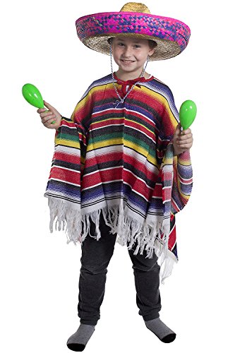 Costume da messicano per bambini, con poncho + grande sombrero