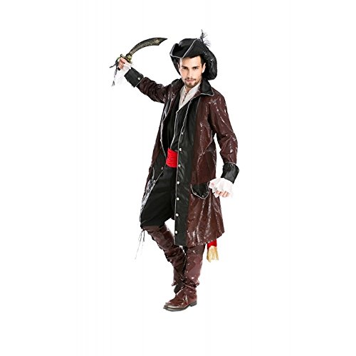 Giacca lunga da pirata, gilet, 1 paio di ghette, foulard rosso e cappello.