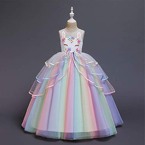 Costume da principessa per bambini e bambine, a maniche lunghe, per Halloween, cosplay, tutù, per matrimoni, feste, carnevale, travestimento, arcobaleno, 3-4 Anni