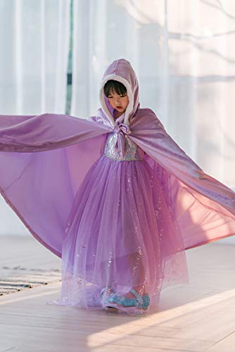 Costume da principessa Elsa Belle, Aurora Sofia, lungo mantello in velluto a lunghezza intera, con cappuccio Viola 5-10 anni
