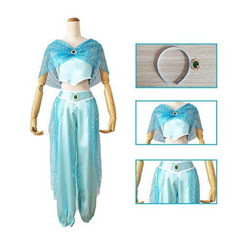 CGBF - Costume da principessa gelsomino per cosplay di Halloween, costume di Aladino da danza del ventre, blu, S