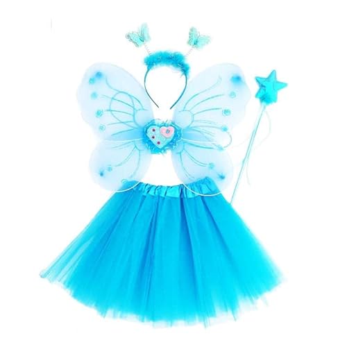 Fun Play Fata Costume per Ragazze - farfalla Fata Ali, Tutù, Bacchetta magica e la fascia fata set costume per 3-8 anni (Turchese)