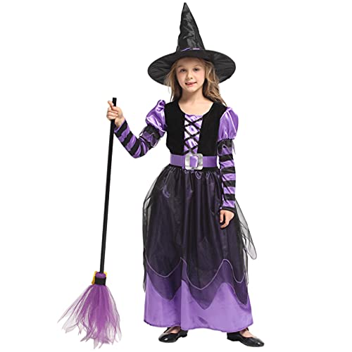 Costume da strega per bambina, costume da strega per Halloween, per cosplay, feste, (taglia: XL, 130-140 cm)