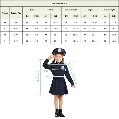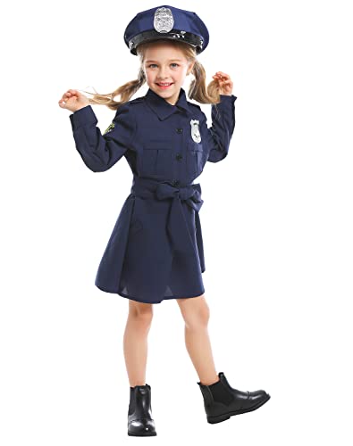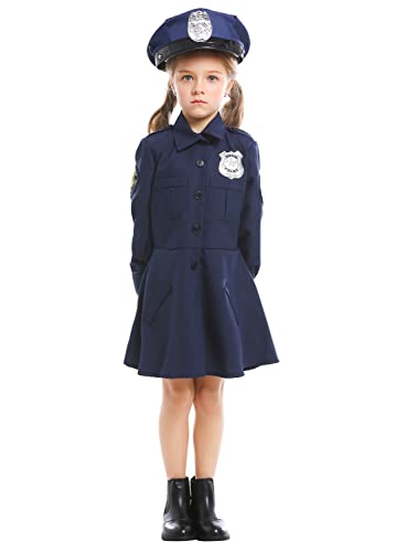 AGQT Costume da Ufficiale di Polizia per Ragazze Costume per Bambini a Maniche Lunghe da Ufficiale di Polizia Cosplay di Halloween con Cintura e Cappello da Poliziotto Blu Navy Taglia 9-11 Anni
